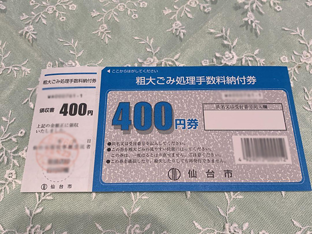 仙台市の場合、小型家電は400円の粗大ごみのチケットを1~4枚貼り付けることで処分が可能です。