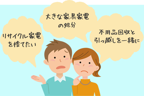 古い家電を捨てたい、家具を処分したい、引越しの粗大ゴミなど解決します!